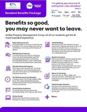Application Qualifications: Minimum monthly income 3 times the tenant’s portion of the monthly rent, acceptable rental history, credit history, and criminal history. All Bay Management Group Baltimore residents are automatically enrolled in the Resident Benefits Package (RBP) for $39.95/month, which includes renters insurance, credit building to help boost your credit score with timely rent payments, $1M Identity Protection, HVAC air filter delivery (for applicable properties), move-in concierge service making utility connection and home service setup a breeze during your move-in, our best-in-class resident rewards program, and much more! The Resident Benefits Package is a voluntary program and may be terminated at any time, for any reason, upon thirty (30)days’ written notice. Tenants who do not upload their own renters' insurance to the Tenant portal 5 days before move-in will be automatically included in the RBP and the renters' insurance program. More details upon application.