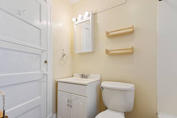 Step into this beautifully maintained apartment featuring gorgeous hardwood floors, fresh paint, and plenty of natural light throughout. The spacious bedroom includes a ceiling fan, window AC unit, and generous closet space with shelving. Enjoy a bright living room, a full bathroom with standing shower and vanity, plus a bonus room perfect for an office or creative space, complete with built-in shelving and mirrored accents that open up the room. The cozy kitchen overlooks the balcony and includes a gas stove and sink, with access to a shared outdoor space below. This apartment blends classic charm with functional updates, offering comfort and style in a great location!