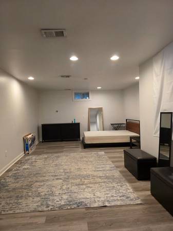 Will offer FURNISHED (Queen mattress and bedframe, Smart TV, dining area with two chairs, desk, dresser, foldable side tables, mirror, seating area/storage ottomans, slow cooker, tea kettle, microwave).
