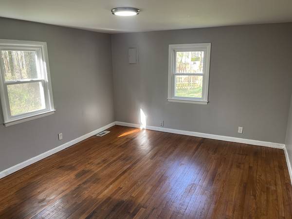 Newly renovated home on long private drive next to the woods. Just renovated. Contractors are finishing punch out now. Features eat-in kitchen, large living room, hardwood floors throughout, large attic for storage, forced air heat, washer / dryer, new windows, and large deck overlooking the woods. Property is close to 6 acres with 5 acres of woods backing up to shallow water. Perfect for hiking