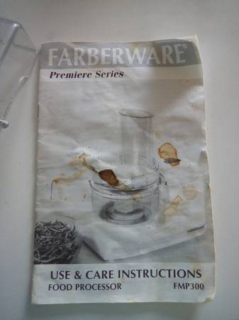 Farberware Prmier Series Food Processor: Chops, Minces, Mixes, Shreds, Slices. Works fine. Only one of the blades has been used. All parts included, plus manual and original box. Located in Reisterstown, MD. Door pick up or public meet up at the Reisterstown Police Precinct.
