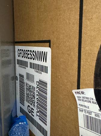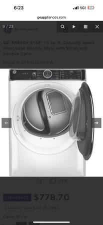 GE® ENERGY STAR® 7.8 cu. ft. Capacity Smart Front Load Electric Dryer with Steam and Sanitize Cycle —brand new, in box Model #: GFD85ESSNWW Feel free to Google the model number for a better idea of...