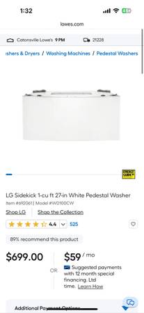 This is brand new, still in the box. If you're interested, give me a call or text at: I usually try to respond quick, so feel free to reach out whenever __ 1.0 cu. ft. LG SideKick™ Pedestal Washer...