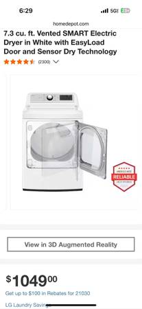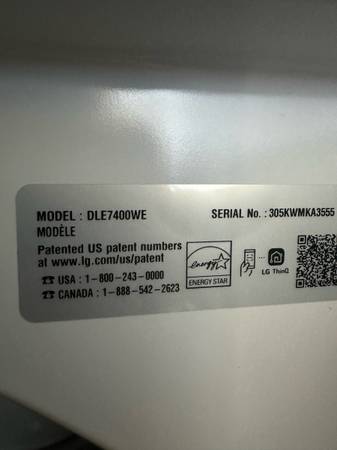 LG 7.3 cu. ft. Vented SMART Electric Dryer in White with EasyLoad Door and Sensor Dry Technology —brand new, out of box Model #: DLE7400WE Feel free to Google the model number for a better idea of...