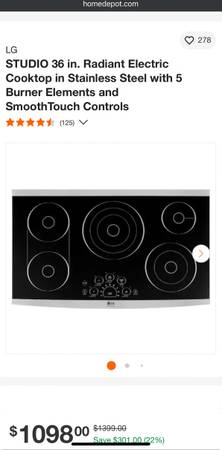 If you're interested, give me a call or text at: I'm usually quick to respond, so feel free to reach out whenever __ LG STUDIO 36 in. Radiant Electric Cooktop in Stainless Steel with 5 Burner...