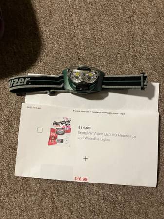 ENERGIZER vision LED headlamp with new batters $10 or if you buy your own batters $5