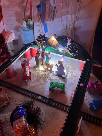 Christmas double train garden I made Things light up as well Good for children Act fast won’t last long