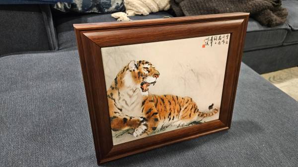 This is a framed painting from Taiwan. It's done on porcelain, I believe. It's in perfect condition. I don't think I have it out of the box since I bought it several years ago.