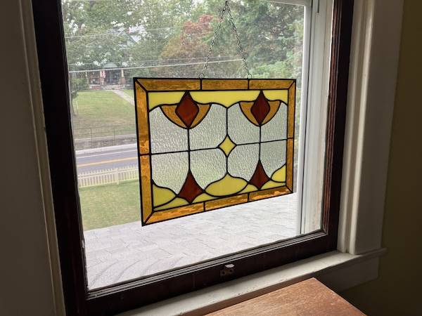 Reproduction of an Old English Leaded Stained Glass Window 12in x 16in Replica antique stained glass window to hang indoors or out $35