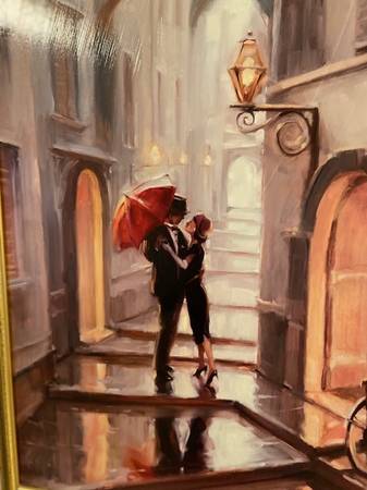 This beautiful large modern Umbrella Painting on board by S. Henderson looks just like an original painting.