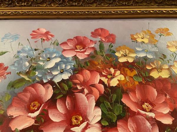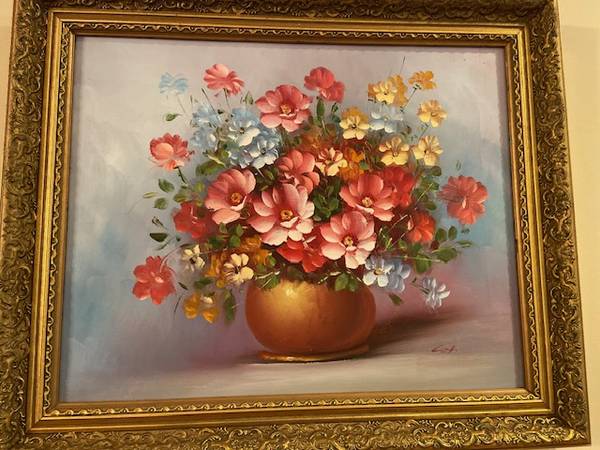 Original. Vintage Oil Painting. Floral art on Canvas signed by Cox.