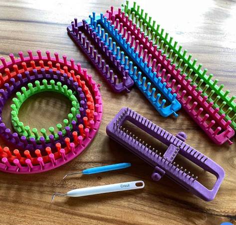 Full set of multiple circular sizes and rectangular size knitting looms. Included is the loom to knit socks and the tools necessary to complete projects.
