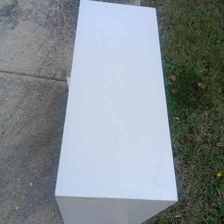 Heavy duty paper holder ...or mail filer. Outside is pressed particle board in white in great shape. The insides is cardboard and great shape. Sits on a desk or table. Was used to keep 11 x 8 1/2 colored paper organized ( letter size). Moving in another direction so needs to go for $10 cash