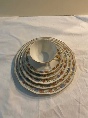 (4) four full place settings including dinner plate, salad plate, bread plate, soup plate, and teacup and saucer: $250 or offer
