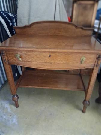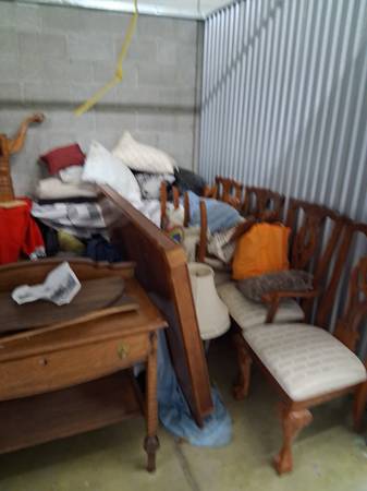Greetings Antique Lovers, I have moved and I have a storage unit full of beautiful antiques. Walnut Coffee Table-$200, Hall Coat Hanger-$250.00, 61' TV with glass and metal stand-$575.00, Solid Oak Dining Set Table and 6 chairs and China Cabinet-$1,700.00, Oak Desk-$250.00, Walnut Corner Display Cabinet-$225.00, Lamps-$150.00.
