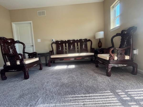 The cushions are stain-free. The sofas have a little small paint splatters. From a smoke-free and pet-free home. Pick up at Ellicott City.