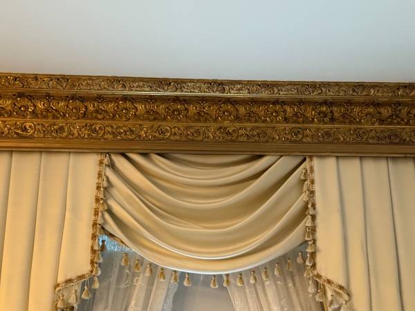 family mansion in Kentucky. The Cornices are gorgeous and can be hung as toppers or has a circle to place a curtain rod. Very old and unusual. We owned them for over 60 years