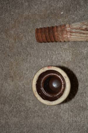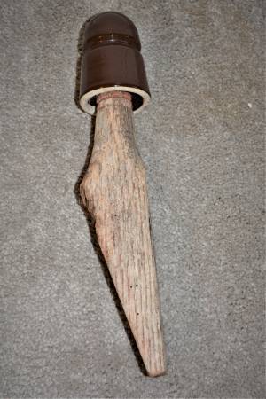 If you are a collector of telephone or telegraph memorabilia here is a rare wooden telegraph staff and porcelain insulator circa. 1896. The staff was attached to the telegraph pole by two bolts. Found in a ditch along side of railroad tracks in Northern California in 1996, it was unearthed when the line was being dismantled. This is an authentic piece of communication history and will be a welcome piece to your collection.