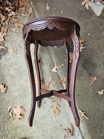 Lightweight table in need of refinishing or use as is. The table is 18 inches in diameter and stands 22 inches. $38. Please call between 8am and 7pm. Thanks