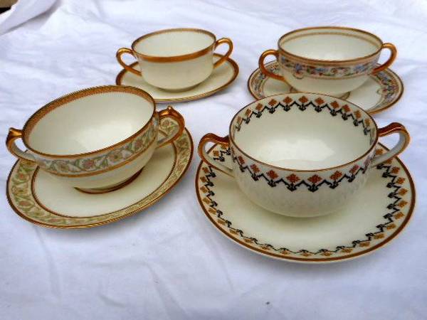 Limoges and Ginori - 4 Vintage Soup or Bouillon Cups and Saucers - $20 (Garrison Forest)
