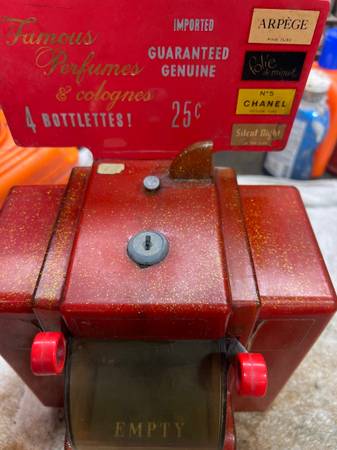 50s vending napkin holder. With refill perfumes no key in good condition. Calls only if no answer leave number you will get a call back no shipping calls 410nine 77two8 sixsix