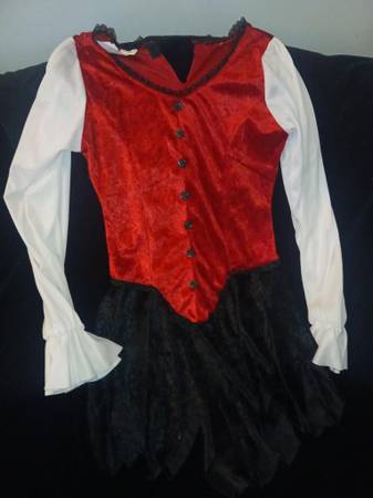 Pirate costume – Size M, long pirate jacket with attached shirt and black pants with boots overlay - $10