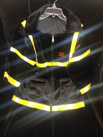 Fireman jacket – Size S/M, high quality materials, heavy velvet fire jacket with reflective yellow accents, can be paired with one of our fireman hats (your choice yellow or red) - $20