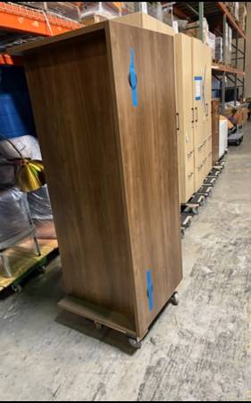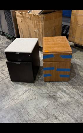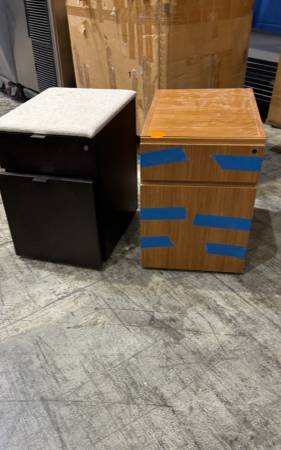New 4 sided desk Front, sides and top open shell type Perfect nice looking Pic is on its side for storage in the warehouse $100 I have mobile peds stack of drawers on wheels white or wood $25