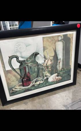 7.) Drink pitcher bottle and seashells 48x38 with glass $40