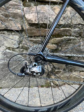 I am the first and only owner of this bike, which I had custom spec’d. The bike has been used moderately but is in mint condition. It has never been crashed or taken a spill of any kind. The paint is in immaculate condition. There are no dents or dings, and no major scratches. Honestly, after a good wash this bike could pass as almost new. The steerer currently has a 25mm conical spacer under the stem, which is common for Cannondale bikes. So you still have 25mm of spacers to play with if you would like to go lower. I am parting ways with it because it has not been used in the past ~3 years and I have another bike that I am keeping in its place.