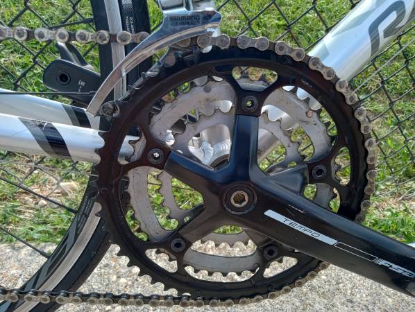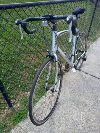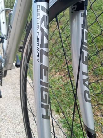 The shiny silver Raleigh REVENIO 1.0 Road Bike is in excellent condition and ready to ride. This bike is well equipped with extra accessories: Look Keo Classic clipless pedals, gel saddle cover, Garmin sensors, Bontrager Flare 3 LED light, and alloy water bottle cage. The road bike also recently tuned up. I am asking for 320 or best offer.