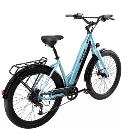 Schwinn Adult Coston 27.5” DX Step-Thru Electric Hybrid Bike, LX/Light Blue