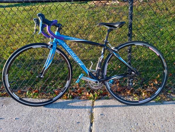 This beautiful in black and blue, Specialized Allez Elite Road Bike is in great condition. The bike has many upgraded components such as Xero Lite wheelset, new Continental Grand Sport Race 700x25mm tires. new inner tubes, new brake pads, Black Ops pedals, and alloy water bottle cage. This Allez Elite road bike has been fully tuned up and ready to ride. I am asking for 380 or best offer for this stunning bike.