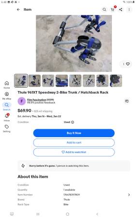 Truly 961XT Speedway 2 bike vehicle bike rack