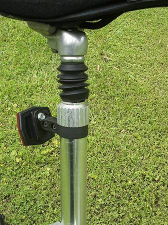 Padded soft seat and large grips along with front suspension and seat shock for a comfortable ride