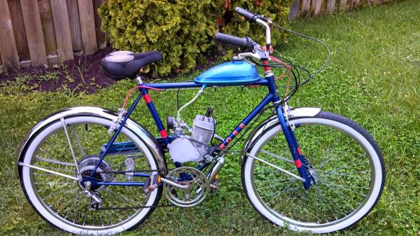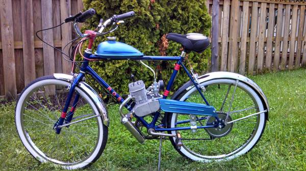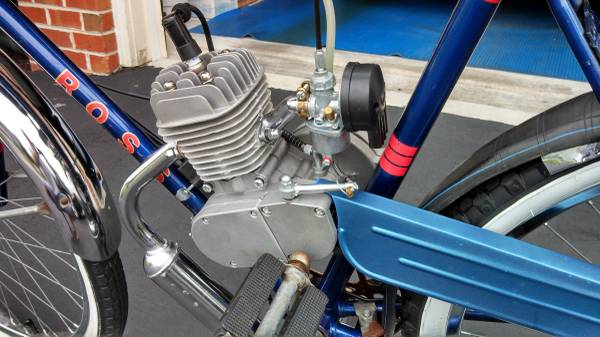 Vintage 1983 Ross 26" with gas/oil combo motor. Originally built by a motorcycle mechanic. Runs great and everything works, with speeds up to at least 35mph and comes with attached speedometer (not shown in pictures). Gas/oil mixing 1.5 gallon container comes with bike. Cash only. PRICE IS FIRM. Serious inquiries only.