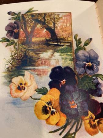 Hardcover. Bound in cream boards with green and colorful floral pictures.