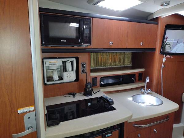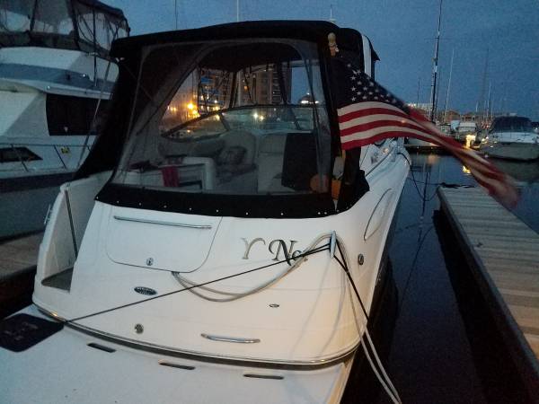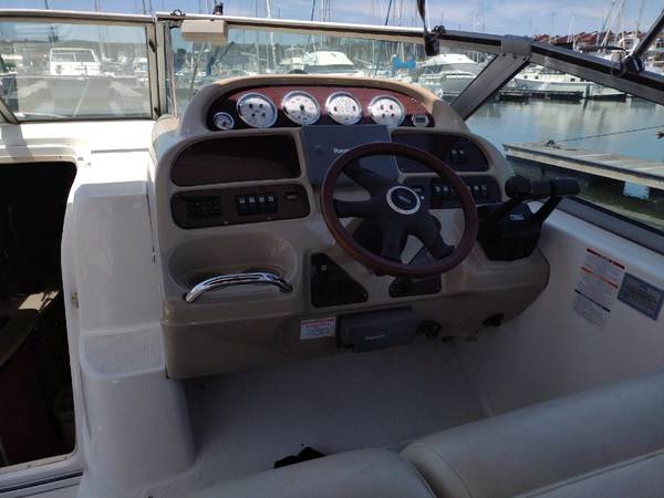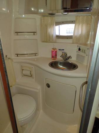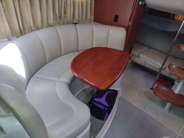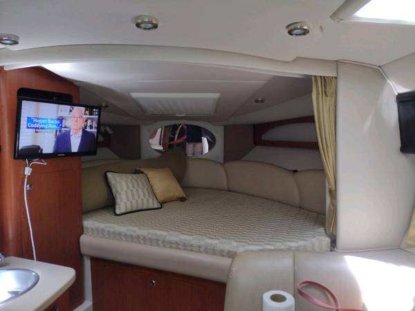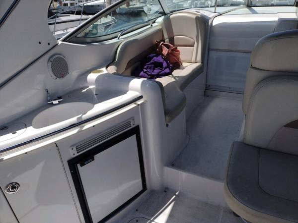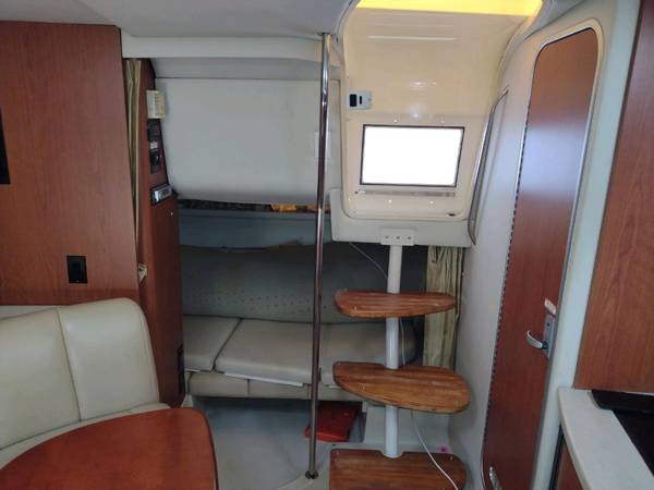 Twin I/O 5.0. Approx 375 hrs. Has AC/heat, sleeps 5. Galley w/ fridge, microwave, cook top, sink. Head w/shower and sink. Cockpit fridge and wet bar. Stereo, color cockpit lighting. Bow sunpad and aft table. GPS, remote spot light, depth finder, walk thru windshield. Generator with low hrs. Electric controlled access to engine room.