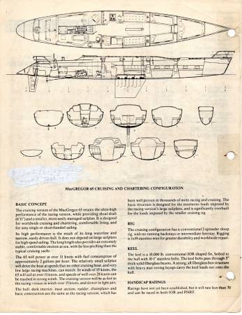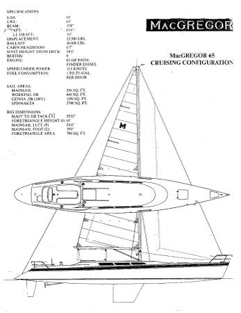 1987 MacGregor 65 sailboat Cutter rigged sloop Cruiser/Racer sleeps 8 65' LOA 12' Beam Ultralight fiberglass hull 25,000lbs 85hp diesel inboard w/90gal fuel tank 30gal water tank w/reverse osmosis...