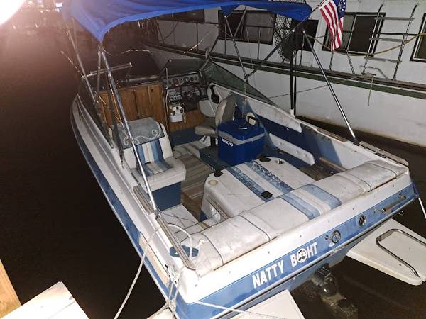 Boat is named the "Natty Boht". Currently wet at Middle Branch Marina.