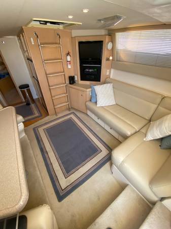 Vida Boa is a 2000 Carver Mariner 350. The Carver Mariner 350 is the most spacious boat of its type in class. Engines inboard - twin Mercruiser Blue Water 350 magnum multi port fuel injected. 300 hp each. Both engines were completely rebuilt by JB auto machine. Port side engine has approximately 335 hours on it. The starboard engine has approximately 135 hours on it. There is a 7.5 kw Kohler marine generator and an ice maker. All Marine electronics are connected via Nmea 2000 marine network which also includes rutter angle and trim tab position. There are two chart plotters. The smaller chart plotter also functions as sonar. Everything on this boat is in very good working condition. Interior upholstery has been replaced with high grade marine vinyl. The boat is currently sitting with a full summer winter helm cover. I have Bimini surround panels also.