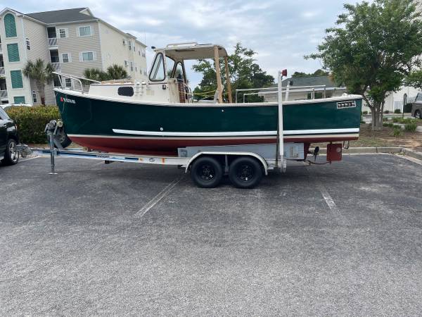 21 foot Atlas Pompano solid fiberglass boat with trailer yanmar four-cylinder diesel engine, curry cabin with bunks, Porta, potty sink great Harbor or fishing boat