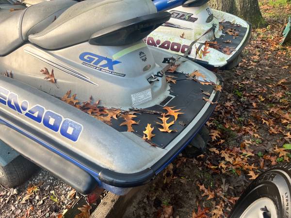 I’m selling a 2000 Sea-Doo GTX and a 2001 Sea-Doo GTX Limited Edition, both together with an aluminum trailer.