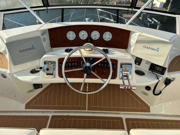 Offered for sale is a 2005 38 Silverton Sport Bridge with twin Cummins 6BTA 370hp Turbo Diesels with only 760 hours, and a Kohler diesel generator with 461 hours. Equipped with Sea deck flooring, 2 new air conditioners, a Hurley H20 dinghy davit, New Electric macerating toilet, and twin Garmin 1243 Touch screen GPS units this boat has all of the cool options you have been looking for. This Sport Bridge actually has a custom made Hard Top that is an awesome feature. If you are looking for an awesome family sized boat with diesel power, this is the one you need to check out. All engine services are up to date, and the fuel tanks were just polished in the summer of 2023. To arrange a showing please contact Eli or Josh. Thanks!