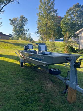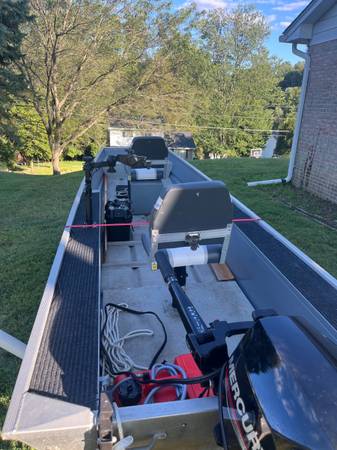 This boat comes with a 9.9 electric-start Mercury outboard, purchased new a year ago from BassPro. Only 10 hours on the motor. Fuel type: gasoline