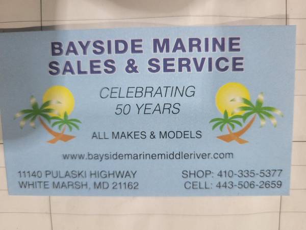 STOP IN &SEA ME OR CALL ,,, TO BUSY FOR EAMAILS OR TEXTING... . THANK YOU CAPT GREG BAYSIDE SALE,S & SERVICE,,,, CELL @ 1 443 506 2659 OFFICE @ 1 410 335 5377 CAPT WILL MAKE IT HAPPEN,,,,,,,,,, THANK YOU AS ALWAY,S CAPT GREG ONE OWNER-----------NEW MORTOR CAP INSIDE AS YOU CAN SEE,,,,
