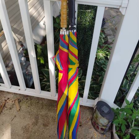 I have 2 very colorful umbrellas, $10 each or both for $15.... If interested Text me at or Stop by 85 Smith Ave Aberdeen MD 21001