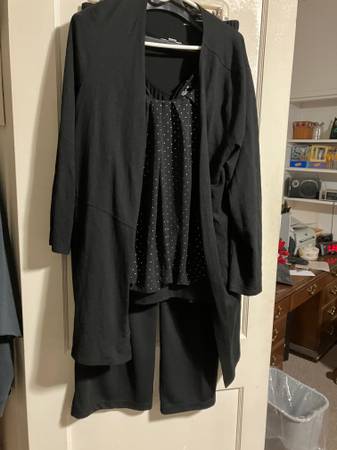 1X PANTS SUIT $ 20 FOR ALL Pants size 16, 2 blouses 1X all black and 18/20 tie string ,cape 3 or XL by CHICO PLEASE CALL NO EMAIL