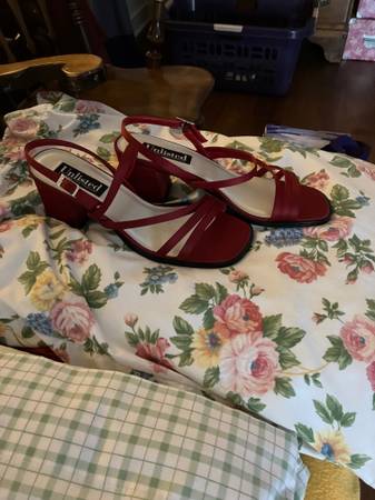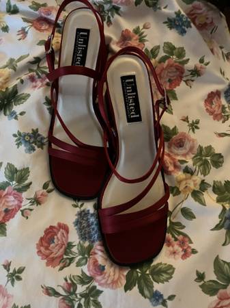 Women's red satin dress shoes NO EMAIL PLEASE CALL