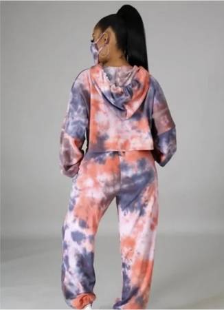 Upgrade your casual look with this comfortable and trendy 3-piece tie-dye jogger set. Each set includes a hooded long sleeve top, matching high-waist joggers with a drawstring, and a coordinating face mask.